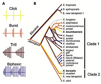 Evolution of advertisement calls in African clawed frogs. , Tobias ML, Evans BJ , Kelley DB ., Behaviour. January 1, 2011; 148 (4): 519-549.