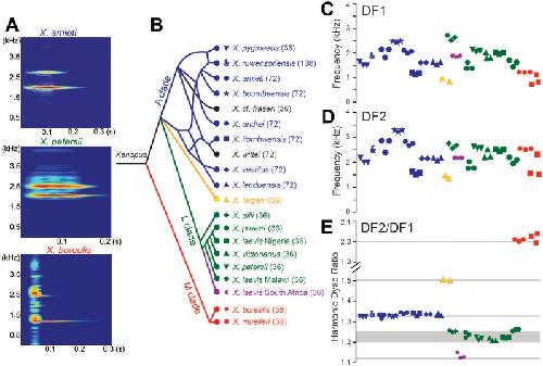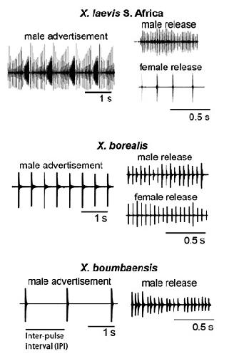 Significance of temporal and spectral acoustic cues for sexual recognition in Xenopus laevis. , Vignal C, Kelley D ., Proc Biol Sci. February 22, 2007; 274 (1609): 479-88.
