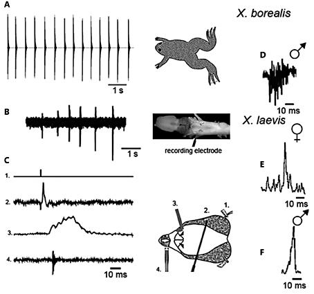 Generating sexually differentiated vocal patterns: laryngeal nerve and EMG recordings from vocalizing male and female african clawed frogs (Xenopus laevis). , Yamaguchi A , Kelley DB ., J Neurosci. February 15, 2000; 20 (4): 1559-67.