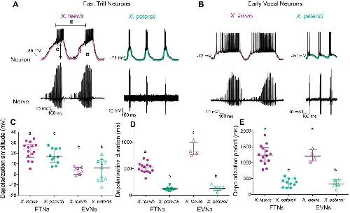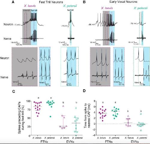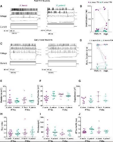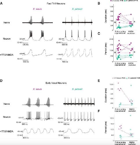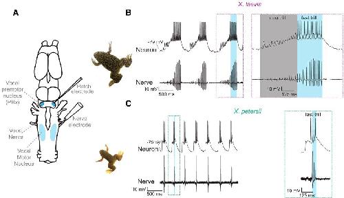 Premotor Neuron Divergence Reflects Vocal Evolution. , Barkan CL, Kelley DB , Zornik E ., J Neurosci. June 6, 2018; 38 (23): 5325-5337.