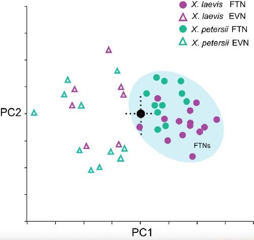 Genetics, Morphology, Advertisement Calls, and Historical Records Distinguish Six New Polyploid Species of African Clawed Frog (Xenopus, Pipidae) from West and Central Africa. , Evans BJ , Carter TF, Greenbaum E, Gvoždík V, Kelley DB , McLaughlin PJ, Pauwels OS, Portik DM, Stanley EL, Tinsley RC, Tobias ML, Blackburn DC ., PLoS One. December 16, 2015; 10 (12): e0142823.
