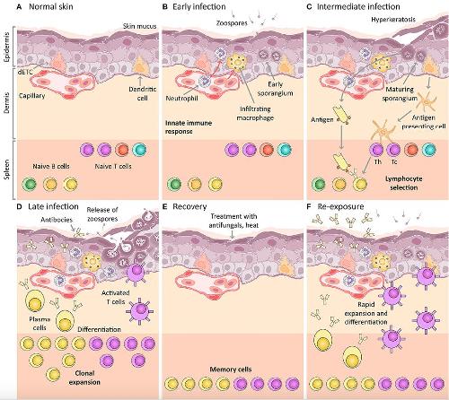 Review of the Amphibian Immune Response to Chytridiomycosis, and Future Directions. , Grogan LF, Robert J , Berger L, Skerratt LF, Scheele BC, Castley JG, Newell DA, McCallum HI., Front Immunol. September 12, 2018; 9 2536.