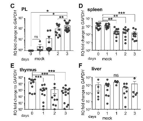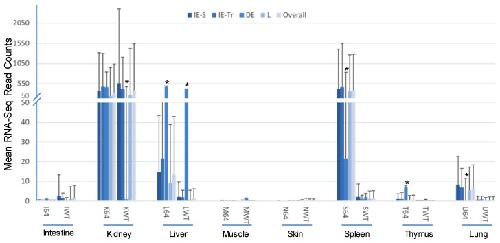 Targeted Transcriptomics of Frog Virus 3 in Infected Frog Tissues Reveal Non-Coding Regulatory Elements and microRNAs in the Ranaviral Genome and Their Potential Interaction with Host Immune Response. , Tian Y, Khwatenge CN, Li J, De Jesus Andino F, Robert J , Sang Y., Front Immunol. January 1, 2021; 12 705253.