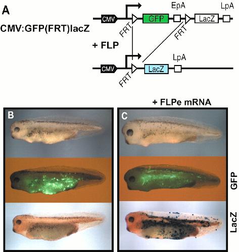 FLP and Cre recombinase function in Xenopus embryos. , Werdien D, Peiler G, Ryffel GU ., Nucleic Acids Res. June 1, 2001; 29 (11): E53-3.