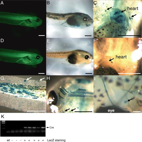 Tagging muscle cell lineages in development and tail regeneration using Cre recombinase in transgenic Xenopus. , Ryffel GU , Werdien D, Turan G, Gerhards A, Goosses S, Senkel S ., Nucleic Acids Res. April 15, 2003; 31 (8): e44.