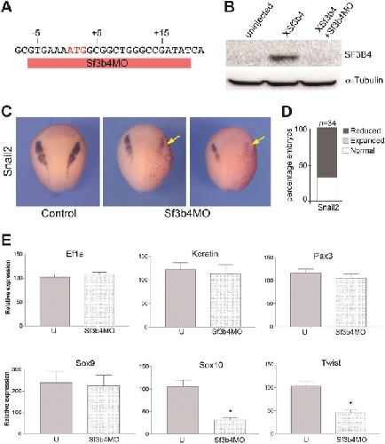 Sf3b4-depleted Xenopus embryos: A model to study the pathogenesis of craniofacial defects in Nager syndrome. , Devotta A, Juraver-Geslin H , Gonzalez JA, Hong CS , Saint-Jeannet JP ., Dev Biol. July 15, 2016; 415 (2): 371-382.