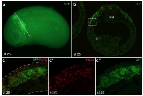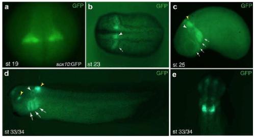 Characterization of Pax3 and Sox10 transgenic Xenopus laevis embryos as tools to study neural crest development. , Alkobtawi M, Ray H , Barriga EH , Moreno M, Kerney R, Monsoro-Burq AH , Saint-Jeannet JP , Mayor R ., Dev Biol. December 1, 2018; 444 Suppl 1 S202-S208.