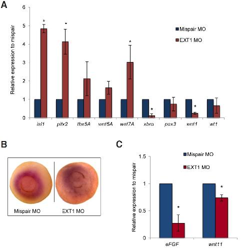 Zygotic expression of Exostosin1 (Ext1) is required for BMP signaling and establishment of dorsal-ventral pattern in Xenopus., Shieh YE, Wells DE, Sater AK., Int J Dev Biol. January 1, 2014; 58 (1): 27-34.
