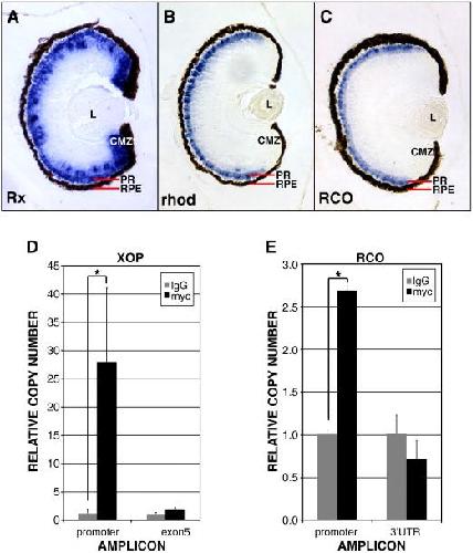 Regulation of photoreceptor gene expression by the retinal homeobox (Rx) gene product., Pan Y, Martinez-De Luna RI, Lou CH, Nekkalapudi S, Kelly LE, Sater AK, El-Hodiri HM., Dev Biol. March 15, 2010; 339 (2): 494-506.
