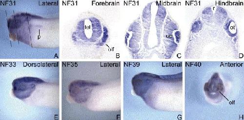 Xenopus aristaless-related homeobox ( xARX) gene product functions as both a transcriptional activator and repressor in forebrain development. , Seufert DW , Prescott NL, El-Hodiri HM ., Dev Dyn. February 1, 2005; 232 (2): 313-24.