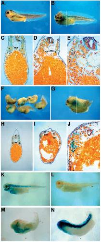 Hex is a transcriptional repressor that contributes to anterior identity and suppresses Spemann organiser function., Brickman JM, Jones CM, Clements M, Smith JC, Beddington RS., Development. June 1, 2000; 127 (11): 2303-15. |