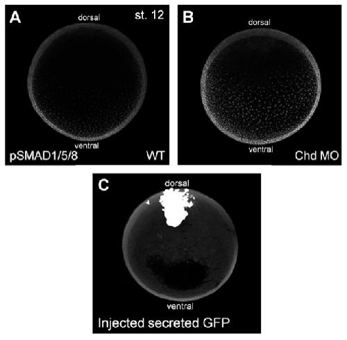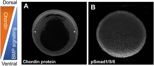 Chordin forms a self-organizing morphogen gradient in the extracellular space between ectoderm and mesoderm in the Xenopus embryo., Plouhinec JL, Zakin L, Moriyama Y, De Robertis EM., Proc Natl Acad Sci U S A. December 17, 2013; 110 (51): 20372-9.