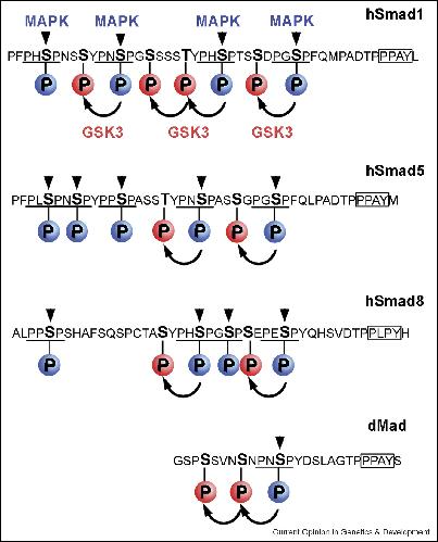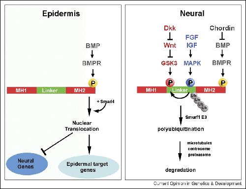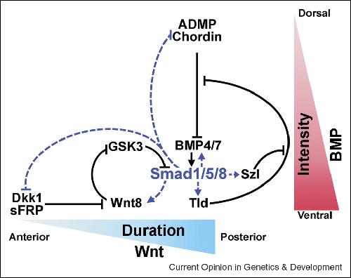 Integrating positional information at the level of Smad1/5/8., Eivers E, Fuentealba LC, De Robertis EM., Curr Opin Genet Dev. August 1, 2008; 18 (4): 304-10.