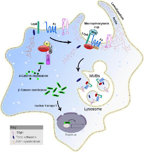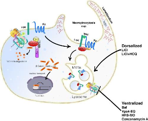 Wnt canonical pathway activates macropinocytosis and lysosomal degradation of extracellular proteins., Tejeda-Muñoz N, Albrecht LV, Bui MH, De Robertis EM., Proc Natl Acad Sci U S A. May 21, 2019; 116 (21): 10402-10411.