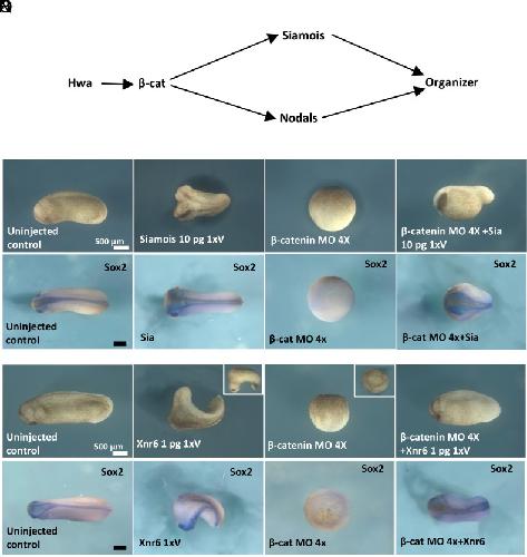Spemann organizer transcriptome induction by early beta-catenin, Wnt, Nodal, and Siamois signals in Xenopus laevis., Ding Y, Ploper D, Sosa EA, Colozza G, Moriyama Y, Benitez MD, Zhang K, Merkurjev D, De Robertis EM., Proc Natl Acad Sci U S A. April 11, 2017; 114 (15): E3081-E3090.