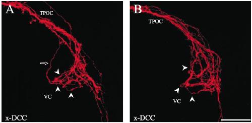 DCC plays a role in navigation of forebrain axons across the ventral midbrain commissure in embryonic xenopus. , Anderson RB , Cooper HM, Jackson SC, Seaman C, Key B ., Dev Biol. January 15, 2000; 217 (2): 244-53.
