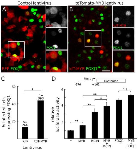 Myb promotes centriole amplification and later steps of the multiciliogenesis program. , Tan FE, Vladar EK, Ma L, Fuentealba LC, Hoh R, Espinoza FH, Axelrod JD, Alvarez-Buylla A, Stearns T , Kintner C , Krasnow MA., Development. October 1, 2013; 140 (20): 4277-86.