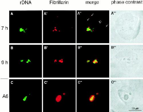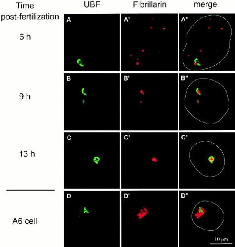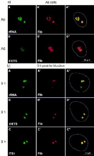 The ribosomal RNA processing machinery is recruited to the nucleolar domain before RNA polymerase I during Xenopus laevis development. , Verheggen C, Almouzni G , Hernandez-Verdun D., J Cell Biol. April 17, 2000; 149 (2): 293-306.