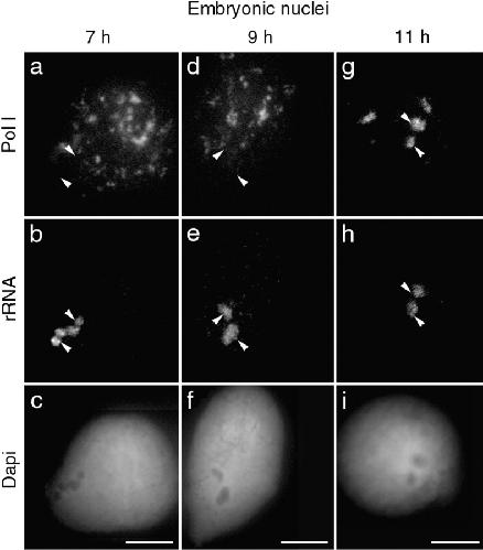 Presence of pre-rRNAs before activation of polymerase I transcription in the building process of nucleoli during early development of Xenopus laevis. , Verheggen C, Le Panse S, Almouzni G , Hernandez-Verdun D., J Cell Biol. September 7, 1998; 142 (5): 1167-80.