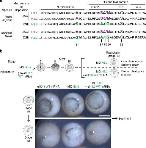 Histone variant H3.3 residue S31 is essential for Xenopus gastrulation regardless of the deposition pathway. , Sitbon D , Boyarchuk E , Dingli F, Loew D, Almouzni G ., Nat Commun. March 9, 2020; 11 (1): 1256.