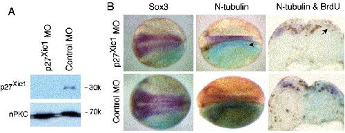 Depletion of the cell-cycle inhibitor p27( Xic1) impairs neuronal differentiation and increases the number of ElrC(+) progenitor cells in Xenopus tropicalis. , Carruthers S , Mason J, Papalopulu N ., Mech Dev. May 1, 2003; 120 (5): 607-16.