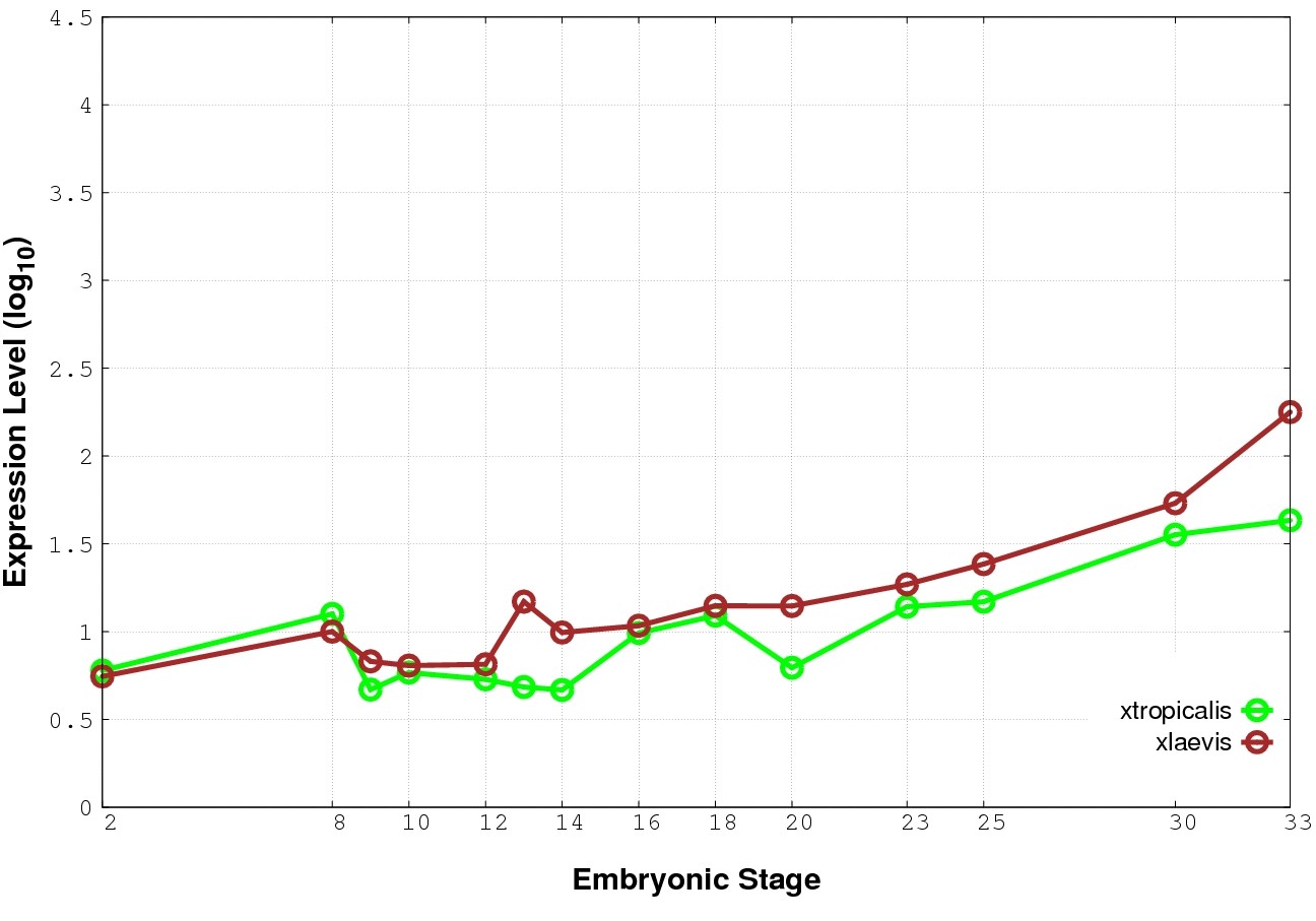 | RNA-Seq and EST Transcriptome profiles | ???displayGene.tropicalis??? | ???displayGene.laevis???.L | ???displayGene.laevis???.S |