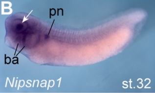 The nipsnap1 gene encodes a tetratricopeptide repeat-containing mitochondrial protein involved in energy metabolism. Expression occurs during embryogenesis, specifically from gastrulation through neuru...[+]