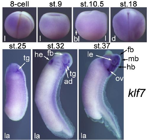 Klf7 is a transcription factor belonging to the kruppel-like zinc finger family. It localizes to the nucleus and binds gc box promoter elements in dna. Its expression is detected in the neural crest, s...[+]