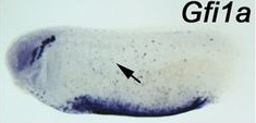 The gfi1 gene encodes a transcriptional repressor protein belonging to the snail/gfi family of zinc finger DNA-binding proteins. The protein localizes to the nucleus. It is expressed in the developing ...[+]