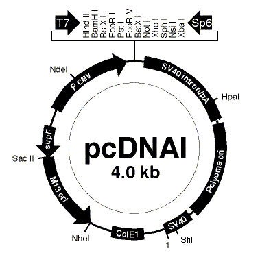 | Vector Details | Vector Map | Name: pcDNAI Type: phagemid 5' Restriction Site: EcoRI 3' Restriction Site: NotI |