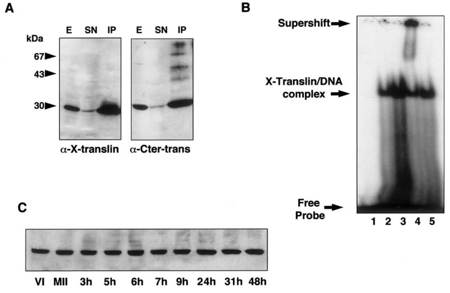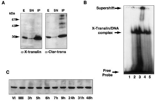 complex supershifted. (C) X-translin expression during Xenopus oocyte maturation and embryogenesis. Stage VI oocyte (VI),