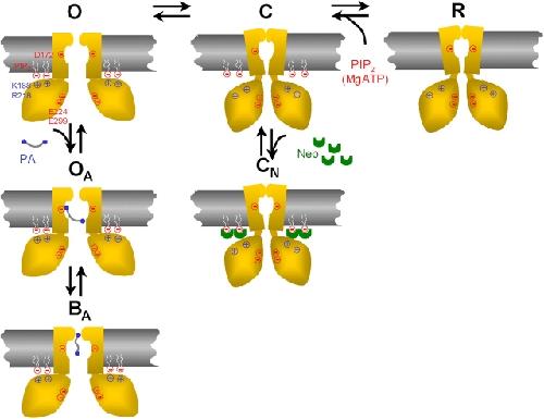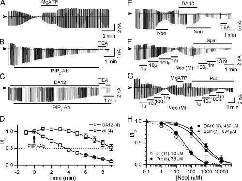 Long polyamines act as cofactors in PIP2 activation of inward rectifier potassium (Kir2.1) channels.