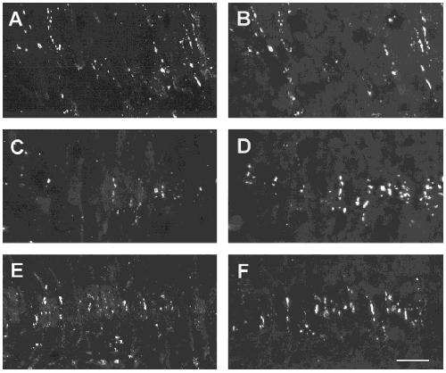(A,C,E), where ectopic AChR aggregates (B,D,F) were induced, but was also seen in the synaptic