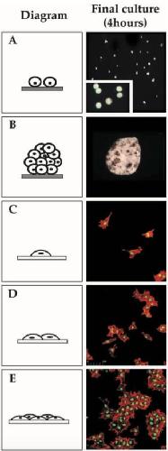 Fig. 4. Single cell analysis of gene activation in low density cell cultures. Low density preparations of cells attached to a fibronectin substrate