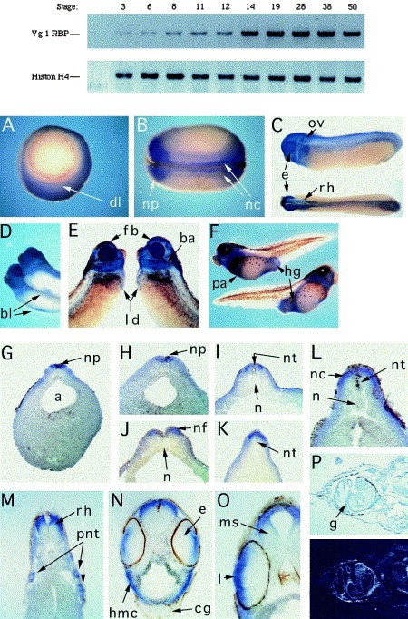 The human KOC gene which is highly expressed in cancer shows typical structural features of an RNA binding protein. We analyzed the temporal and spatial expression pattern of KOC in mouse embryos at different gestational ages. The expression of KOC seems to be ubiquitous at early stages. During advanced gestation highest KOC expression occurs in the gut, pancreas, kidney, and in the developing brain. The expression pattern of KOC was compared to its Xenopus homologue Vg1-RBP during frog development. Similar expression was found in these organs suggesting an important functional role of the homologous proteins in embryonic development.