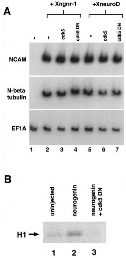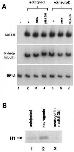 neurogenin (lane 2) or 50 pg neurogenin with 2 ng cdk5 DN (lane 3).