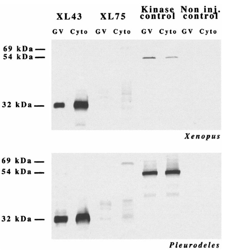 XL43 with an unexpected Mr of 32 000. Myc-XL75 protein is detected