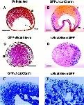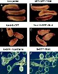 Figure 9. Animal cap assays reveal the dissociated nature of blastomeres expressing dominant-negative α-catenin. (A) Animal caps in 1× MMR normally heal and involute after 1 h as shown in GFPαNcat-injected embryos. (B) αNcatNtermGFP-expressing animal caps fail to involute, and dissociated blastomeres disperse after 1 h. (C) Dissociated GFP-expressing animal caps reaggregate in 2 mM Ca2+, whereas in D animal caps expressing αNcatNtermGFP do not. mRNA was injected into the animal pole of both cells of two-cell embryos. |