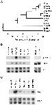 Smad8 activates Xbra in animal pole explants. (A) Phylogenetic tree of the Smad proteins. The numbers below the tree indicate the percent divergence among the amino acid sequences. The sequences used here include rat Smad1, Smad3, and Smad8, mouse Smad2 and Smad5, human Smad4, Smad6, and Smad7, Drosophila Mad and three Caenorhabditis elegans Mads, sma-2, sma-3 and sma-4. (B) Smad8 induces Xbra in animal pole explants. Xenopus embryos at two-cell stage were injected with 1–2 ng RNA of Smad2, Smad3, Smad5, Smad8 and 10–20 pg of CA ALK-2 or CA ALK-4. The embryos were dissected at stage 9, and the explants were cultured until stage 12. The animal pole explants were analyzed by RNase protection with probes of Xbra, gsc, and EF-1α. The ubiquitously expressed EF-1α was used as a loading control to monitor the total RNA levels among samples. Embryos at stage 12 and the animal pole explants from the uninjected embryos were used as controls. (C) Smad8 synergizes with Smad4 in Xbra activation. Xenopus embryos at two-cell stage were injected with 50 pg of CA ALK2 RNA or 0.2 ng RNA of Smad8 alone, Smad4 alone, or Smad8 together with Smad4. The embryos were dissected at stage 9 and the explants were cultured until stage 12. The animal pole explants were analyzed by RNase protection with probes of Xbra and EF-1α.