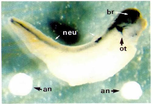 neural tube; br. brain with eye vesicle; ot, otic vesicle
