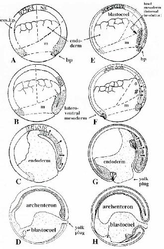Fig. 4. Comparison of the gastrulation processes of Urodela