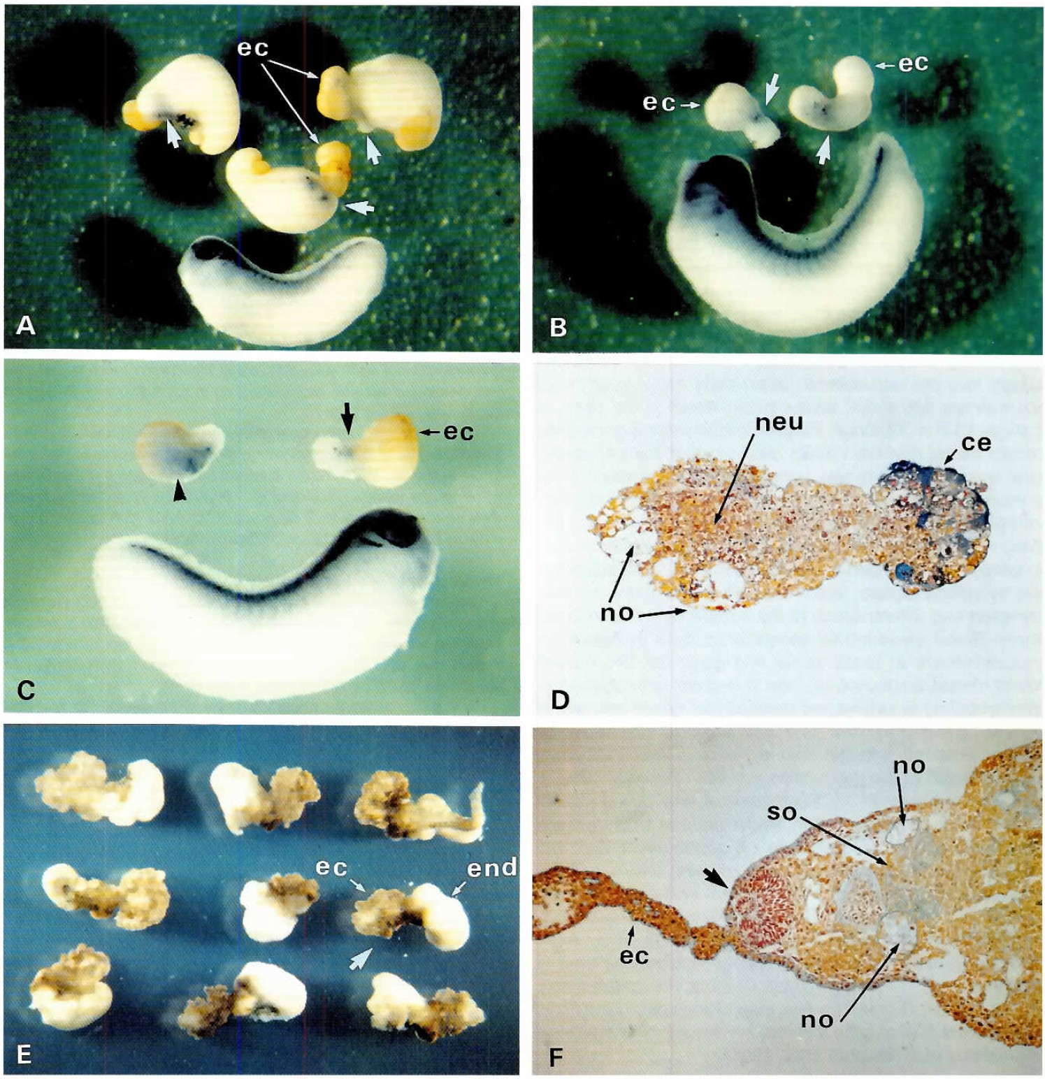 The classical Einsteck-test (Spemann and Mangold, Roux Arch. Dev. Biol. 100: 599-638, 1924) and data from total exogastrulae (Holtfreter, 1933) suggest that vertical signals are transmitted between the chordamesoderm (organizer) and reacting ectoderm in the early phase of neural induction. In contrast to these results with Axoloti (urodeles), several authors observed the expression of neural specific genes in Xenopus exogastrulae, isolated dorsal blastopore lip with adjacent ectoderm (open-face explants) and Keller-sandwiches. Our data with Xenopus (anurans) also show that the expression of neural specific genes takes place in exogastrulae. However, when we prepared open face explants and exogastrula-like structures by microdissection at very early gastrula stage, the signal of a class II beta-tubulin, characteristic of terminal neural differentiation, is not found in the ectoderm. These results suggest that planar signals transmitted from the chordamesoderm into the ectodermal part can fairly be excluded under these experimental conditions. In similar experiments with Triturus alpestris we could not observe either the differentiation of neural structures in the ectodermal part of exogastrulae. These results confirm earlier experiments of Holtfreter performed with Ambystoma mexicanum (Axoltl) embryos. On the basis of the published data of different authors and our results, we cannot exclude the existence of planar signals for early and/or transient expressed genes before the onset of gastrulation in Xenopus, which make the neuroectoderm susceptible for the response to vertical signals during gastrulation. On the other hand our experiments with Triturus alpestris suggest that planar neural signals are unlikely in this species. These differences between Triturus and Xenopus embryos are discussed in the context of the peculiarities in morphological structure, competence and speed of development of the two species.
