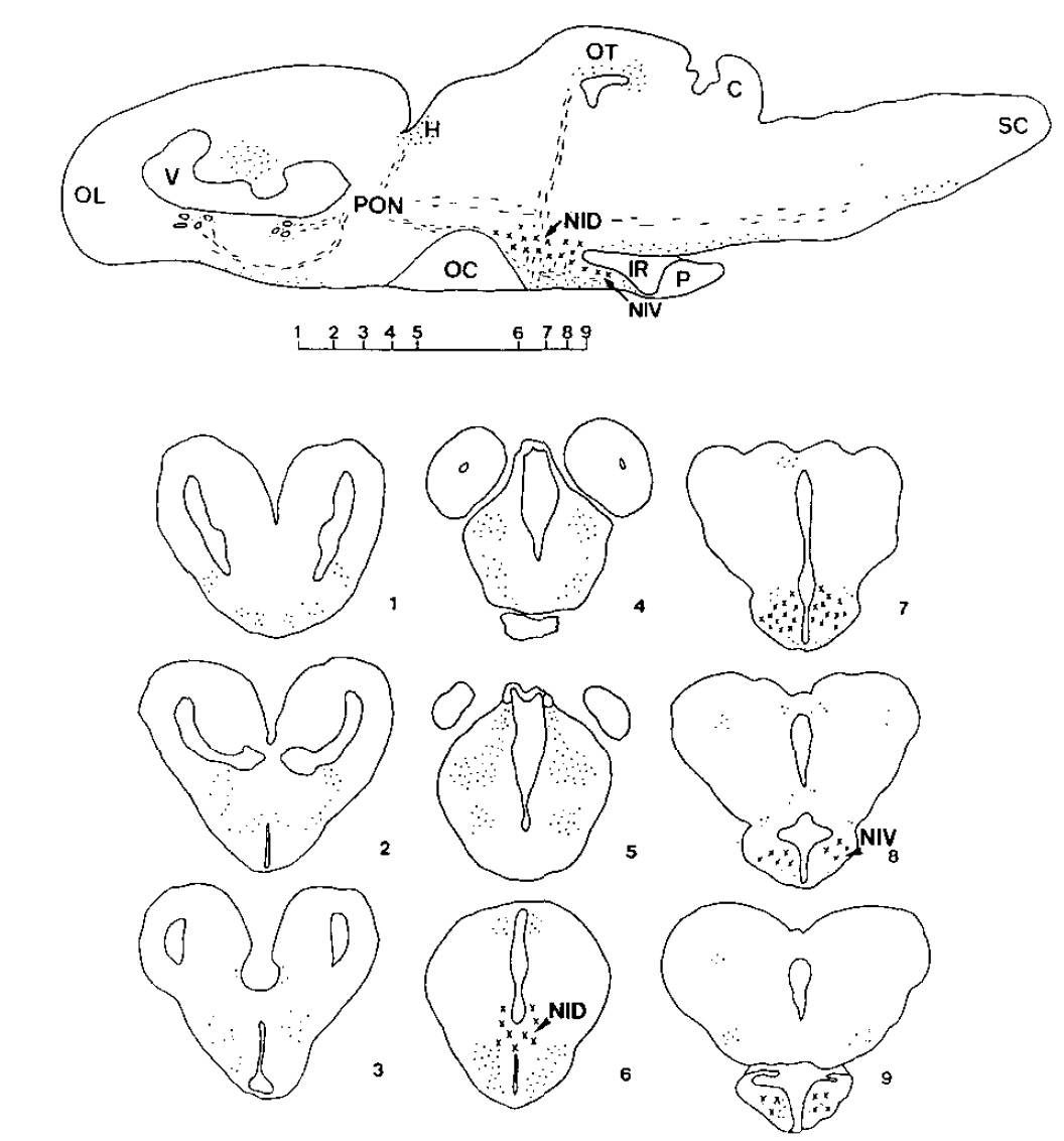 Melanin-concentrating hormone (MCH) is a vertebrate neuropeptide produced in hypothalamic neurons. In bony fish, such as trout, MCH acts as a neurohypophysial hormone which, once released into the circulation, acts on pigmented skin cells with the result that the fish turns pale to camouflage itself against a light colored background. In other animals the role of MCH is not clearly established but it appears to be a neuromodulator/transmitter within the central nervous system rather than a hormone. The present study examines MCH function in the grass frog, Rana temporaria. Using immunocytochemistry the location and morphology of irMCH neurons were followed, from tadpole to adult frog. In adult R. temporaria a group of MCH neurons appeared to comprise small and large-celled populations located in the ventral and dorsal infundibular regions, respectively. A group of MCH neurons in the preoptic area is proposed, although the perikarya were rarely immunostainable. Immunoreactive fibers were seen in various areas of the brain, including the olfactory lobes, optic tecta, habenular nucleus, and spinal cord. Immunoreactive MCH cells were only visible in midmetamorphic climax stages, and cellular morphology suggested low secretory activity until the animal first emerged onto land at which time nuclear size and granulation increased significantly. No such increase was observed in equivalent stages of the South African clawed toad, Xenopus laevis, an animal which is fully aquatic throughout its life in contrast to R. temporaria which is terrestrial.(ABSTRACT TRUNCATED AT 250 WORDS)