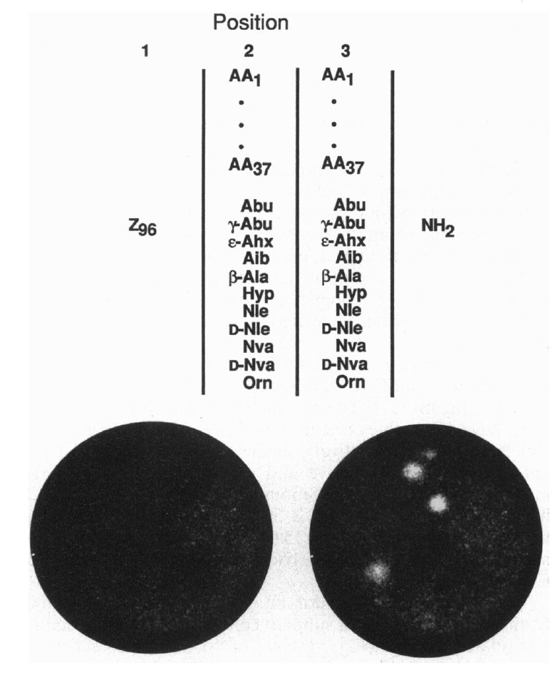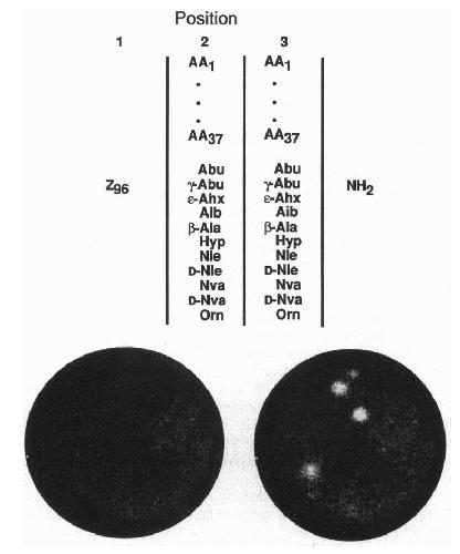 FIG. 1. (Upper) The synthetic peptide combinatorial library used to
