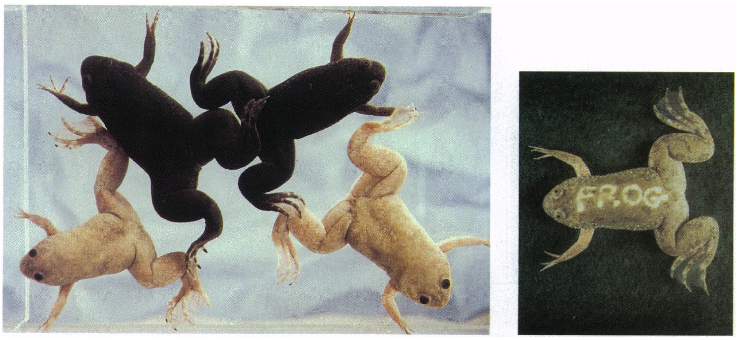 injected into Xenopus (white animals), while injection of a control peptide (D-Trp-Abu-Arg-NH2) at the same concentration causes no response