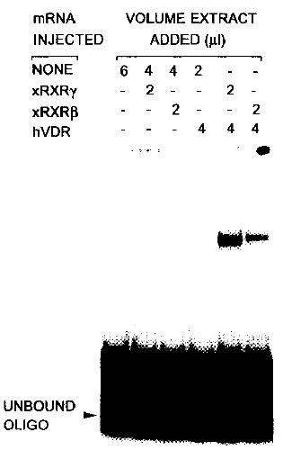 Fig. 3. Band shift assays to show that xRXRI3 enhances the binding