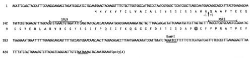 'fhe potential cleavage site for signal 1 peptidase is indicated by an arrow. 'fhe ,