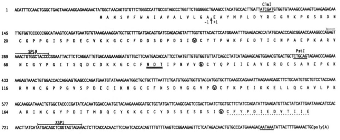 FIG. 1. Nucleotide sequence and translation of the xPl transcript as deduced from eDNA clones