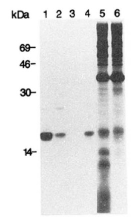 control-incubated, immunoprecipitated, radiolabeled 7B2; lanes 2 and