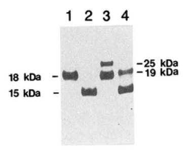 extracts; E, 18kDa product from lobe extracts; and C, 18-kDa product